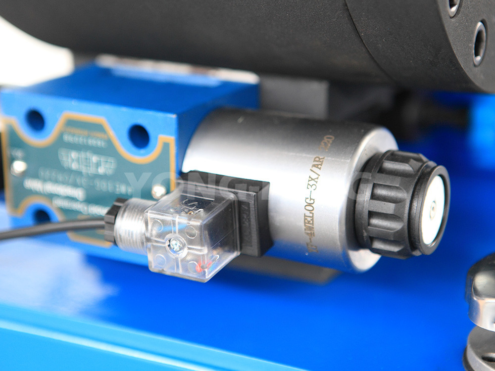 2、液压系统由电 机、油泵、电磁阀、调压阀及液压阀组成了具有进退运动的双液压油路,而且在双液压油路中还增加离一个快速泄油阀油路,以达到更加快速 回位的目的,且速度可调、噪音和系统压力降低。
